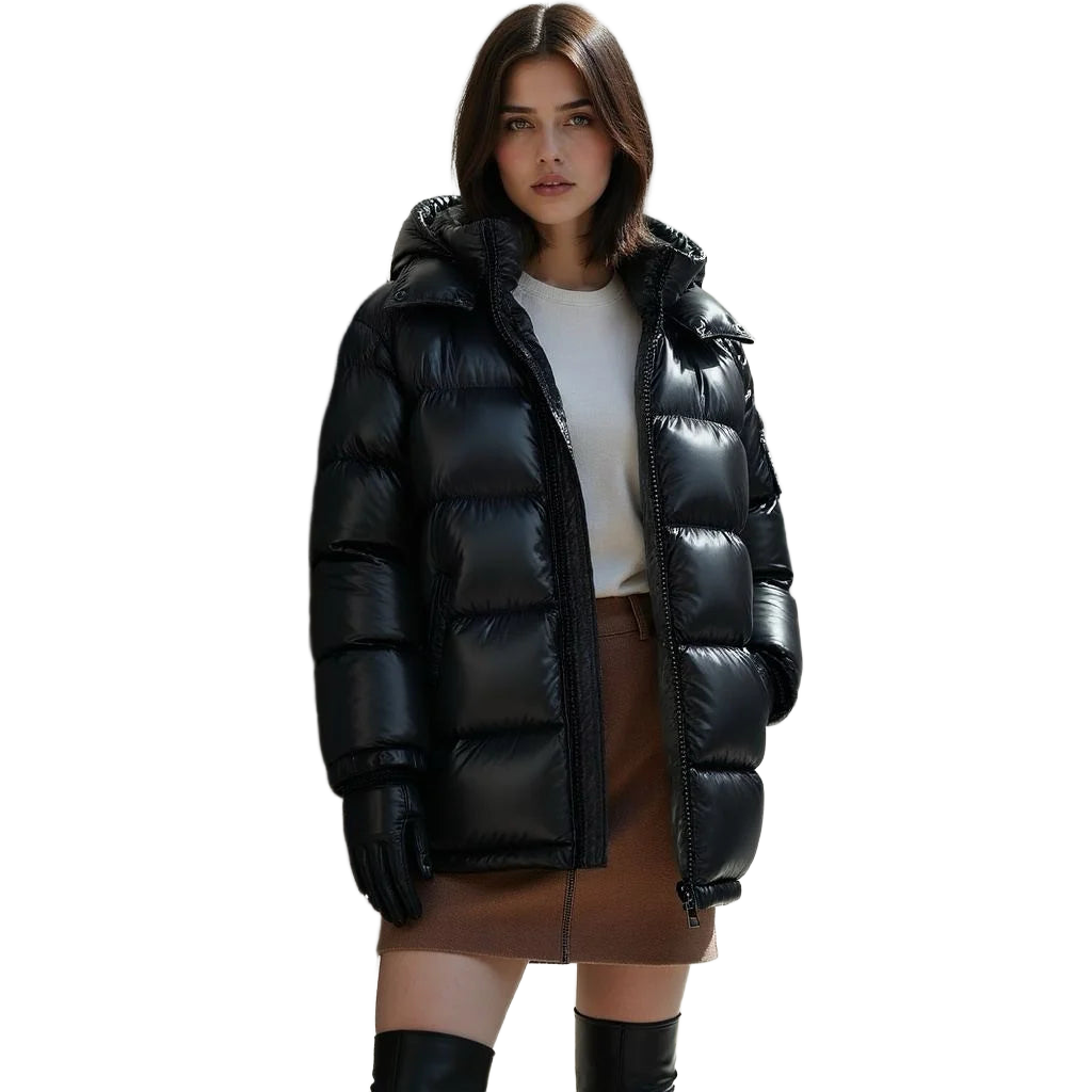 Damen Winter Pufferjacke mit Kapuze und Stehkragen