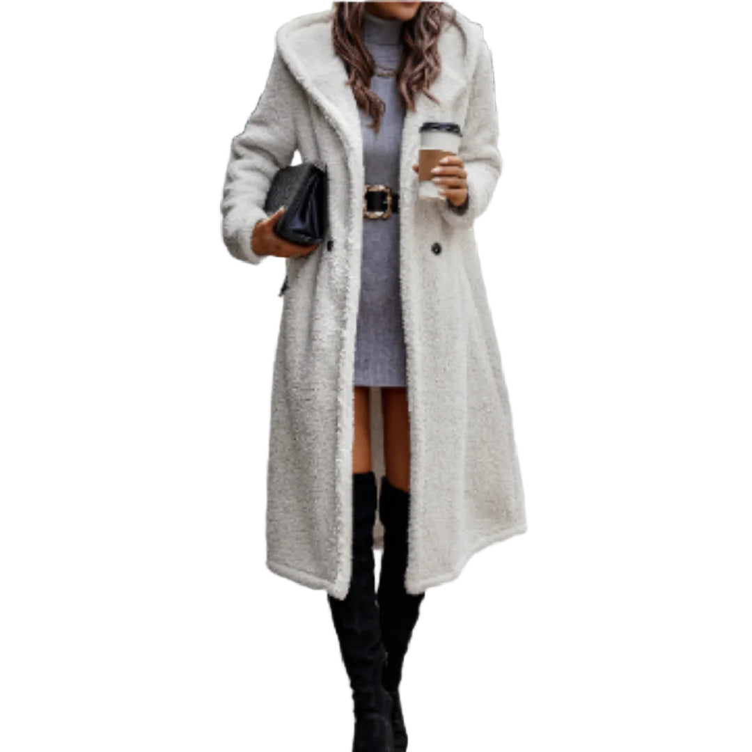 Damen Wintermantel Lang mit Kapuze und Knopfverschluss