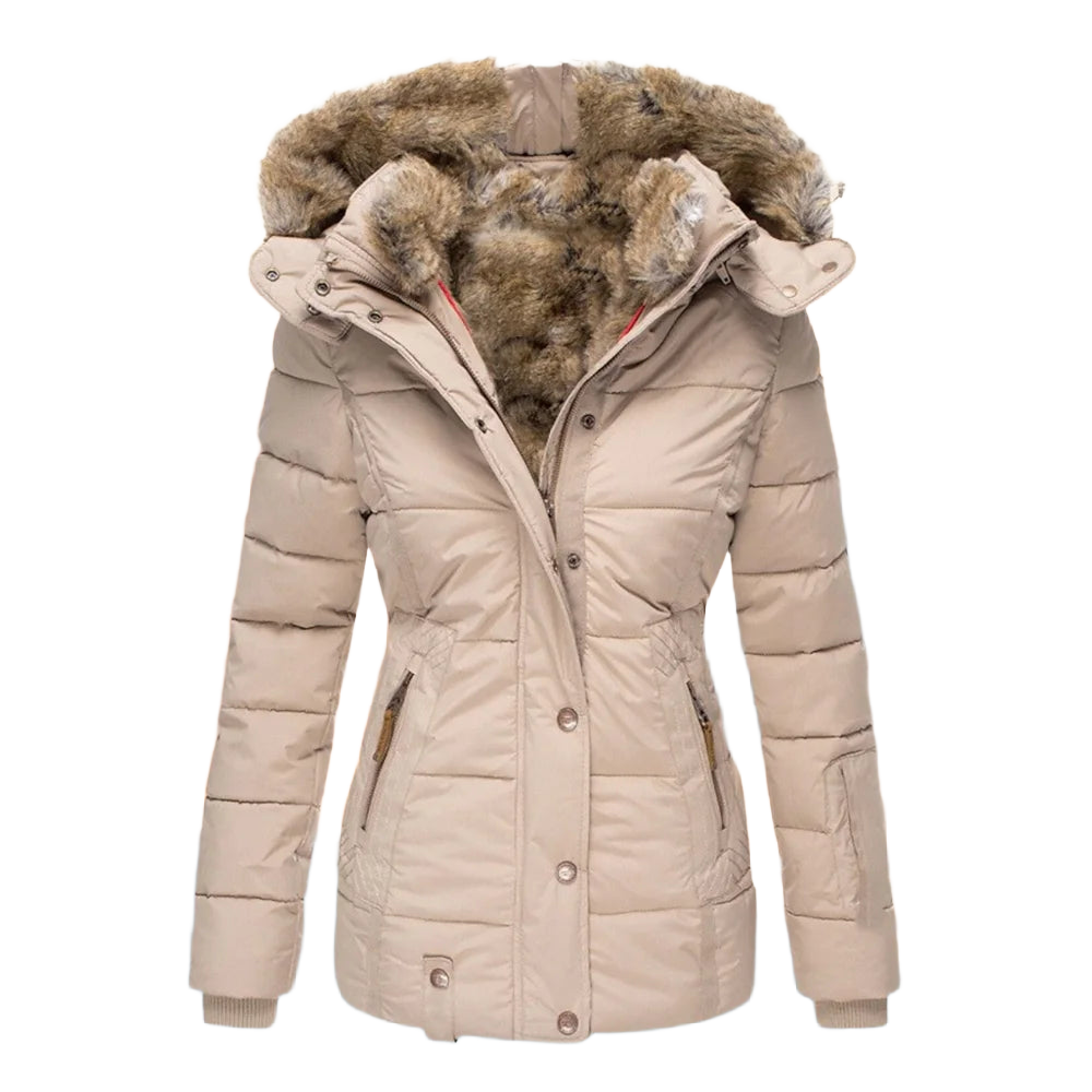 Winter Steppjacke mit Plüschfutter und Kapuze für Damen