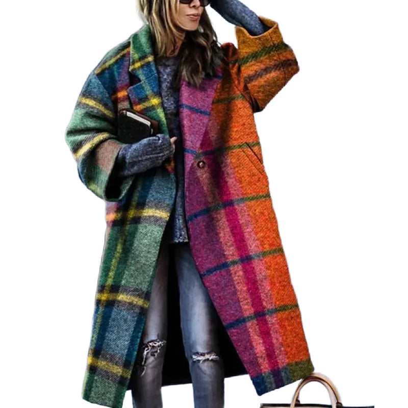 Damen Oversize Mantel mit Karomuster und Knopfverschluss