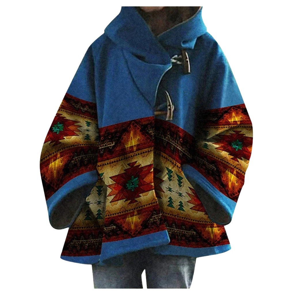 Damen Poncho Mantel mit Kapuze im Ethno-Stil