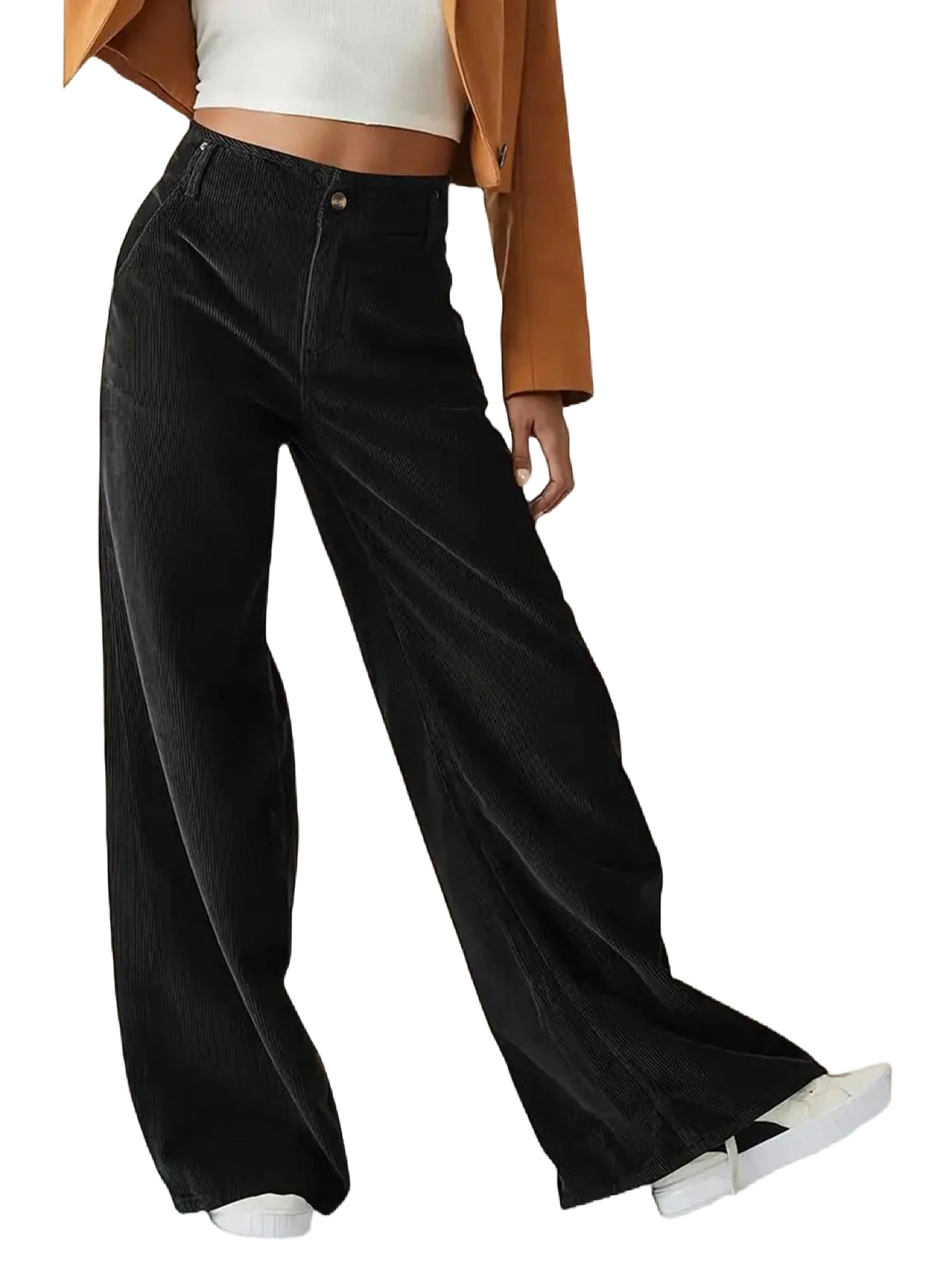 Diese Damen Cordhose mit weitem Bein ist der perfekte Begleiter für einen entspannten Tag. Kombiniere sie mit deinen Lieblings-Oberteilen und genieße den Komfort und Stil, den sie bietet. Ideal für Freizeit und Alltag!