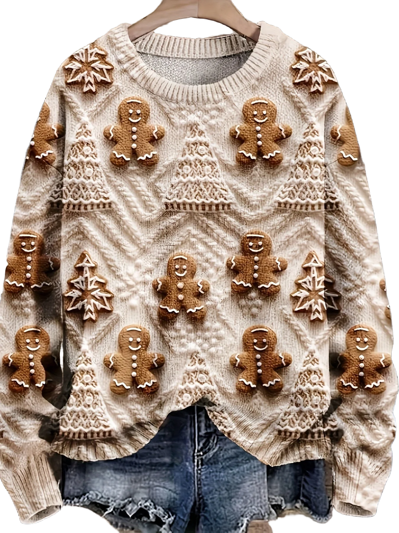 Damen Weihnachtspullover mit Lebkuchen und Baummotiven