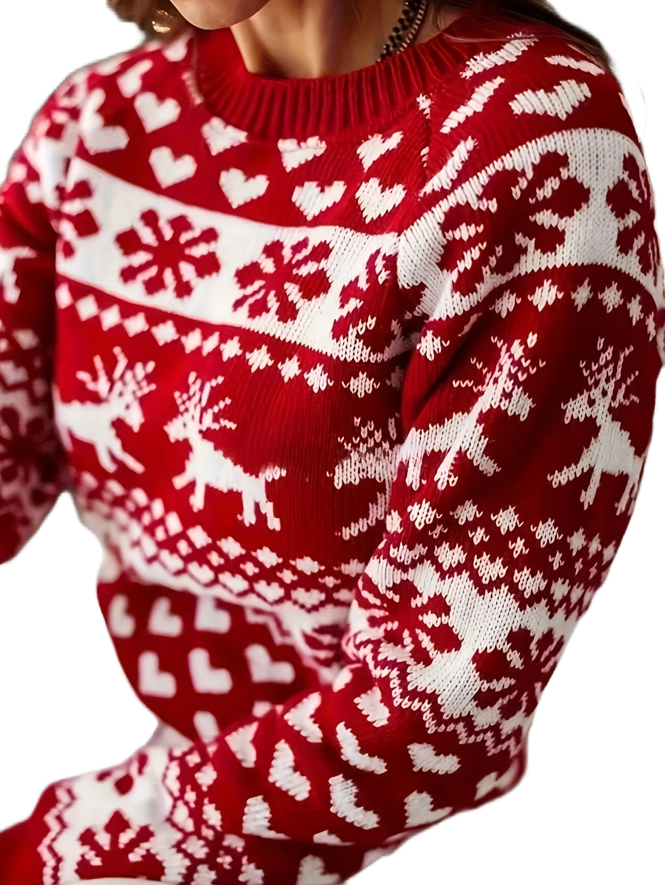 Damen Weihnachtspullover mit Rentier und Schneeflockenmuster