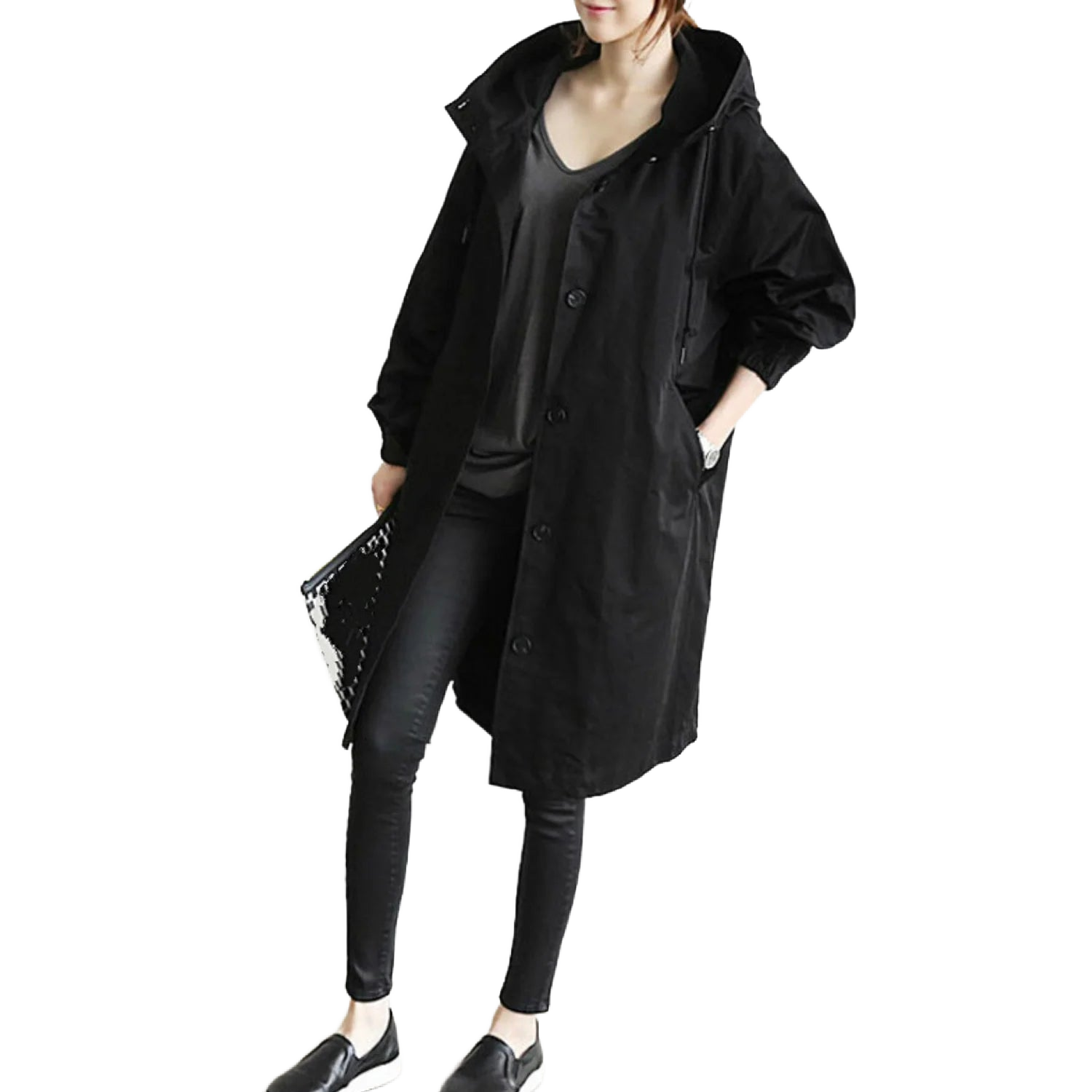 Erleben Sie stilvollen Komfort für Ihre täglichen Ausflüge mit diesem vielseitigen, Langer Damenregenmantel mit Kapuze und Knopfleiste. Ob für die Arbeit, ein entspanntes Wochenende oder einen abendlichen Ausflug – dieser Mantel kombiniert Funktionalität mit Eleganz und sorgt damit immer für einen überzeugenden Auftritt.