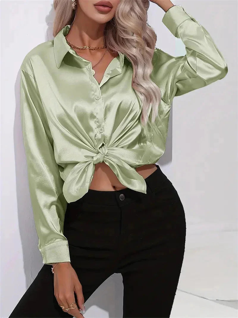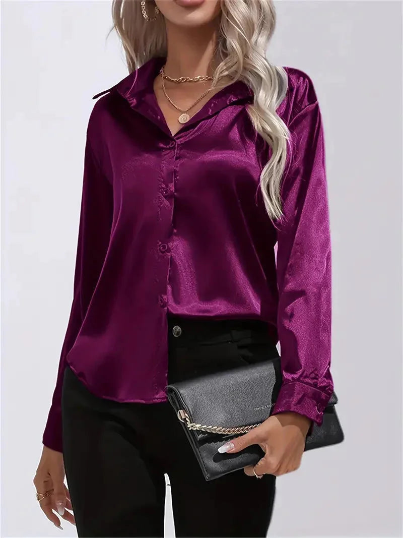 Damen Bluse aus Satin mit eleganten Knöpfen