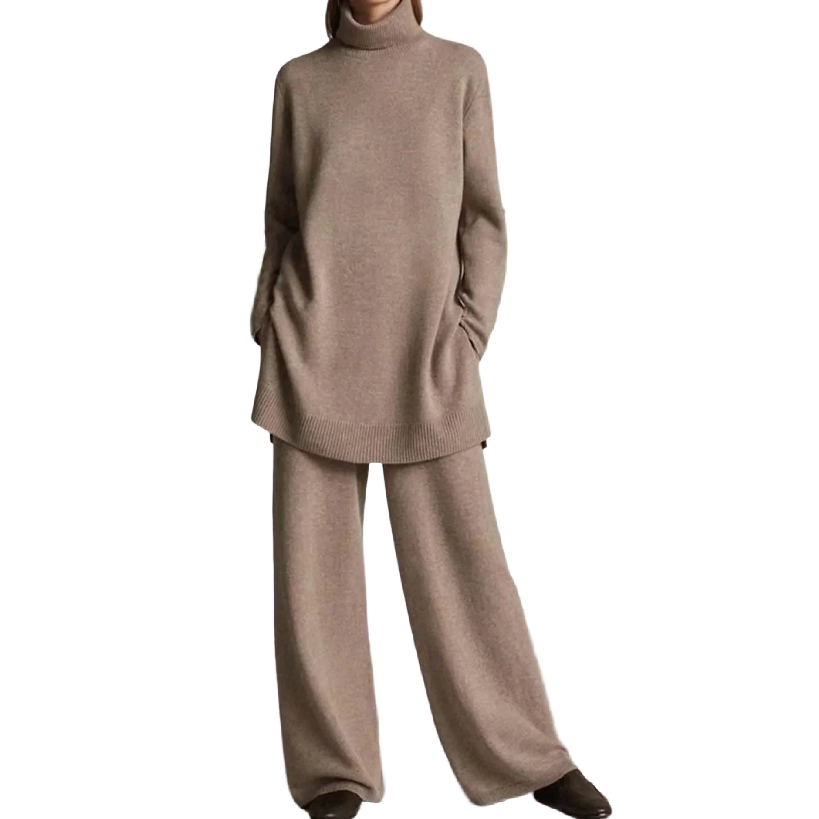 Damen Strickset in Beige mit Rollkragenpullover und Hose