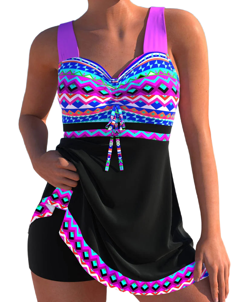 Damen Tankini mit buntem Muster und Schnürdetails