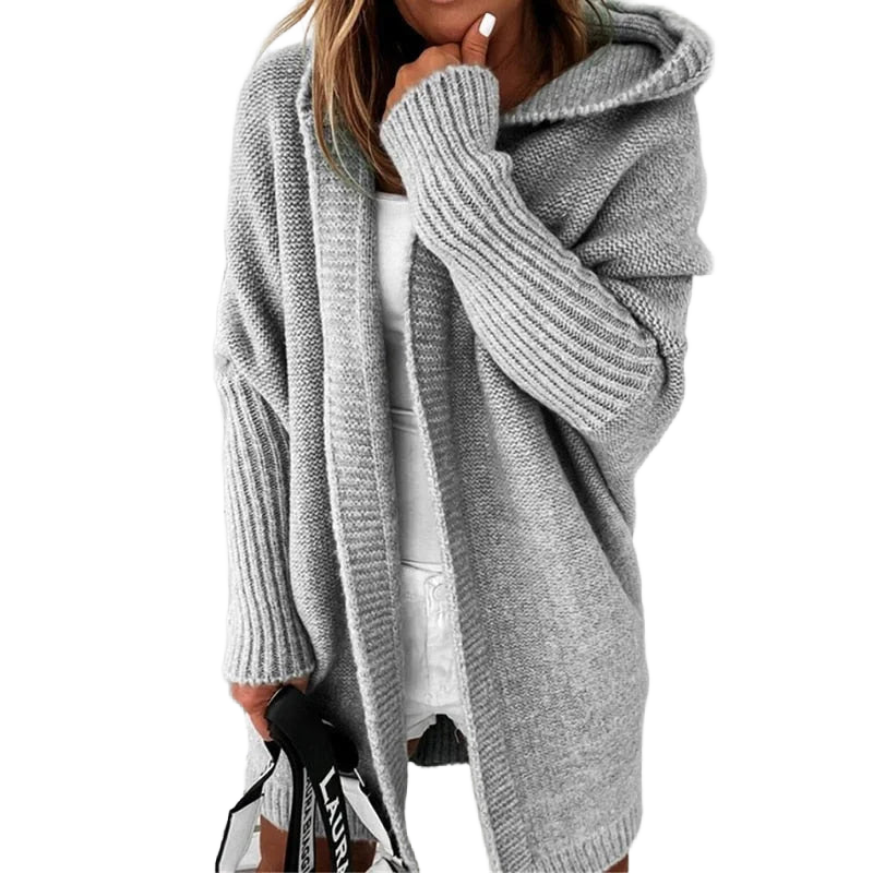 Langer Strickmantel Damen mit Kapuze