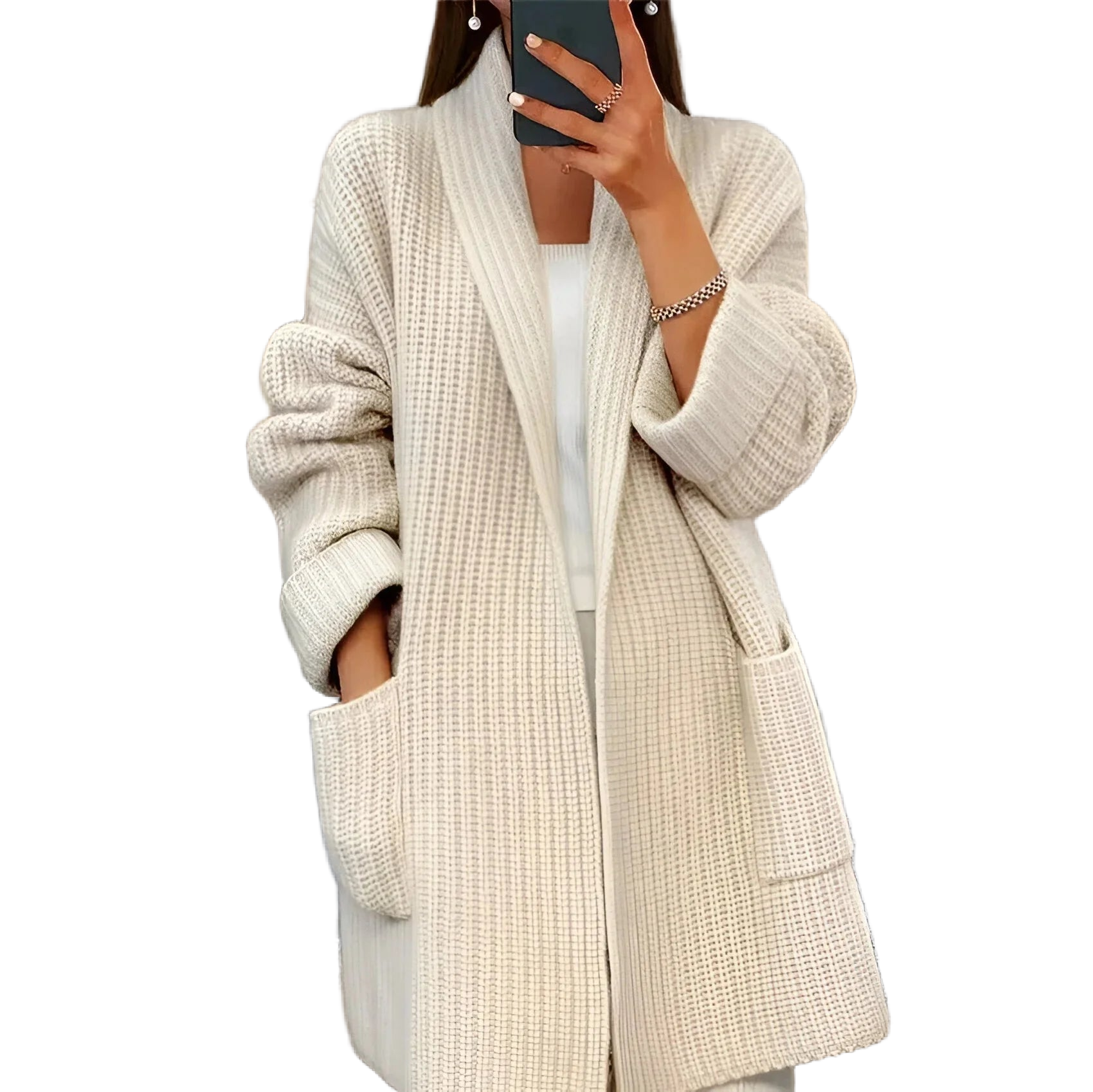 Erleben Sie den Komfort und Stil eines eleganten Strickmantels, ideal für kühle Tage und gemütliche Abende. Dieser Mantel verbindet moderne Ästhetik mit zeitloser Funktionalität und wird schnell zu Ihrem Lieblingsstück.