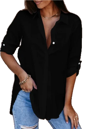Damen Locker Geschnittene Bluse mit Langarm und Kragen