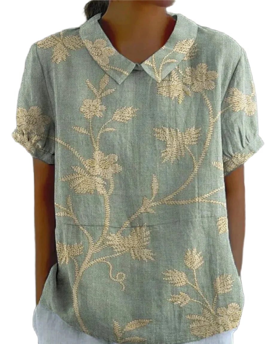 Damen Polo mit floralem Stickmuster und kurzen Ärmeln