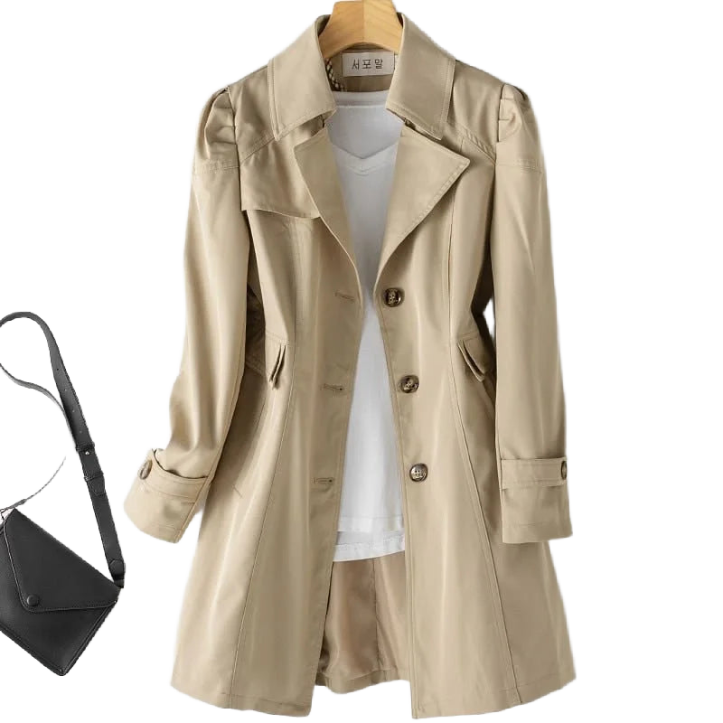 Damen Trenchcoat mit hohem Kragen und eleganten Knöpfen