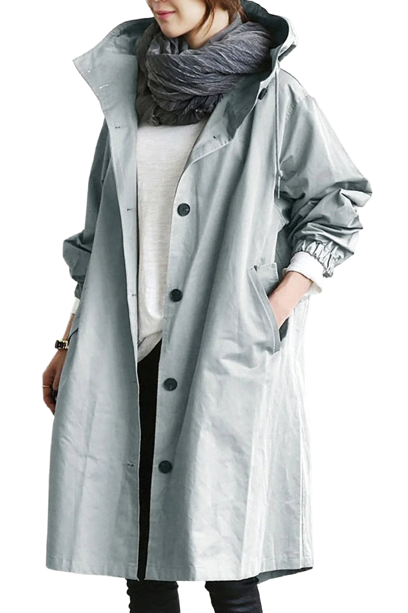 Begegnen Sie dem wechselhaften Wetter mit Stil und Selbstbewusstsein. Dieser modische, wasserdichte Trenchcoat mit Kapuze ist perfekt für die moderne Frau, die sowohl Funktionalität als auch Eleganz schätzt. Sein vielseitiges Design macht ihn zum idealen Begleiter für jede Jahreszeit und jede Gelegenheit. Erleben Sie Komfort, Schutz und zeitlose Ästhetik mit unserem neusten Must-have.